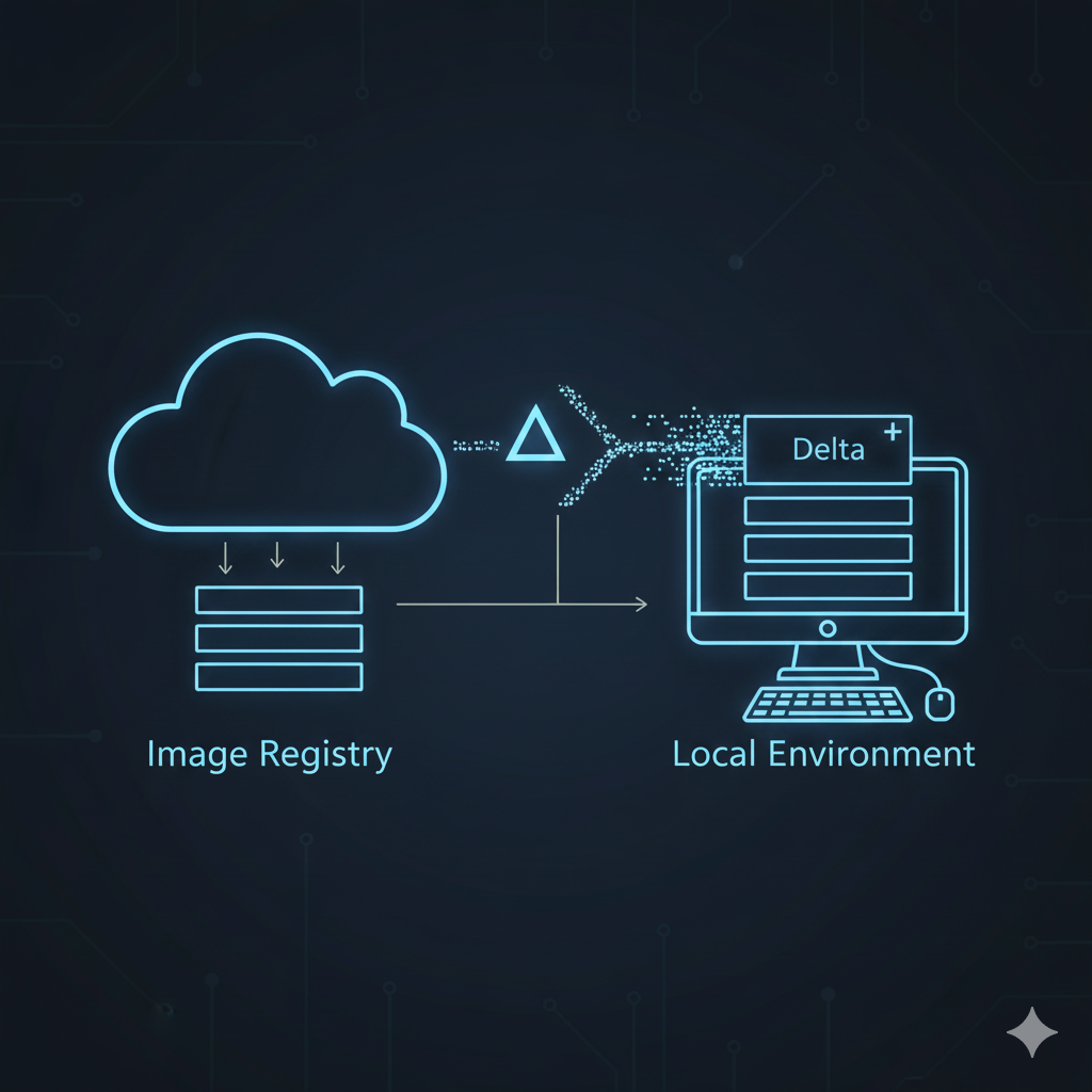 - 증분 전송 (Delta Transfer): 이미지를 컨테이너 레지스트리(예: Docker Hub)로 푸시(Push)하거나 풀(Pull)할 때, 이미 로컬에 존재하는 레이어는 전송되지 않고 변경된 레이어(Delta)만 전송됩니다. 이는 네트워크 대역폭 사용을 최소화합니다.