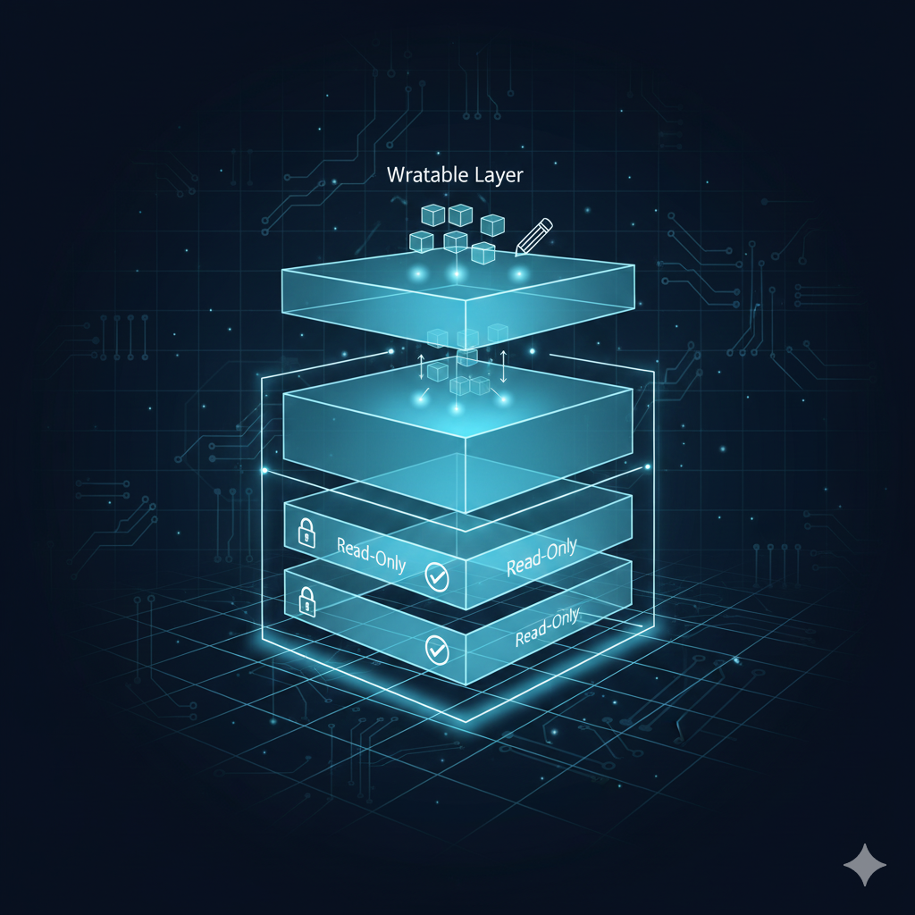 ✨ 핵심 원리: '읽기 전용' 레이어와 Union File System의 조합 🛡️